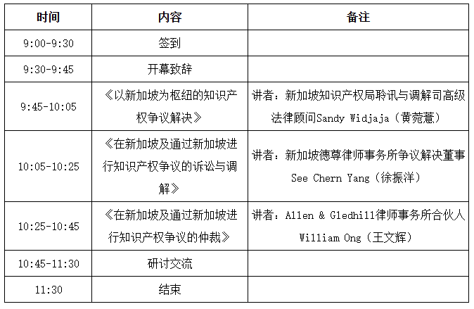 (一)活动主题:以新加坡为枢纽的知识产权争议解决。