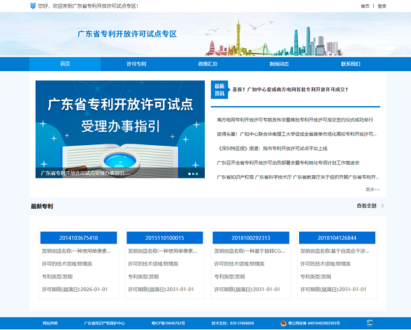 广东省专利开放许可试点专区首页展示界面